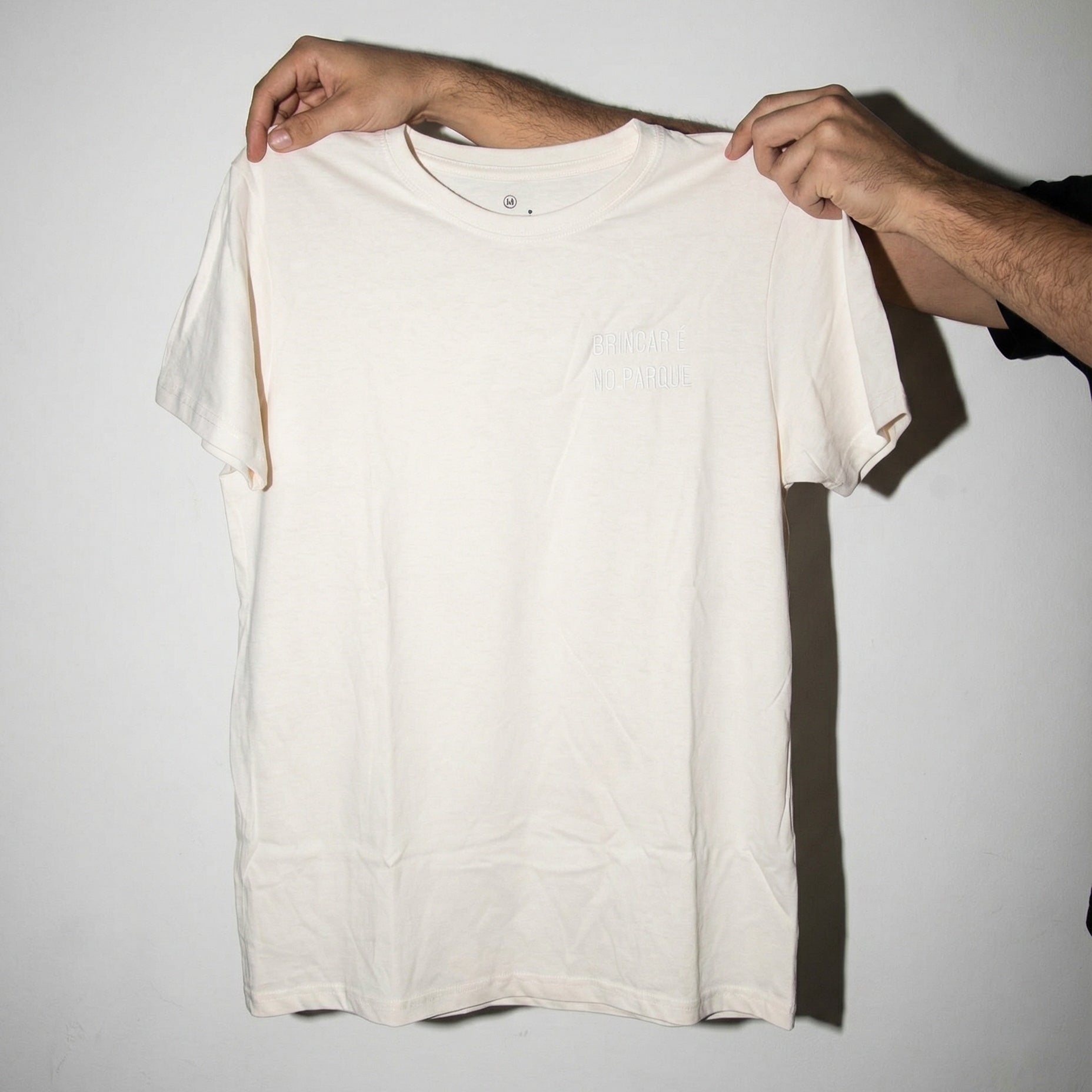 100% algodão, sem costuras laterais, corte direito unissexo